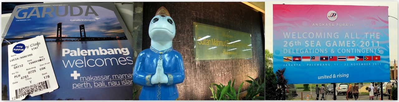 Ini kali kedua saya mengunjungi Palembang. Kalau tahun lalu saya pernah datang melalui Pelabuhan Bom Baru, tahun ini saya mendaratkan kaki di kota pempek melewati Bandar Udara Sultan Mahmud Badaruddin II. Sangat berbeda dengan tahun 2010, bandaranya kini sudah cantik dan sudah dihiasi dengan pernak-pernik Sea Games 2011. Kalau akhir tahun lalu saya berangkat bersama bendera ACI detik.com, akhir tahun ini saya pergi bersama 4 orang blogger yang diundang oleh Gubernur Palembang, Pak Alex Noordin melalui Fortune PR. Karena hanya mendapatkan kesempatan 2 hari 1 malam, saya dan yang lainnya pun tak menyia-nyiakan untuk keliling Jakabaring.