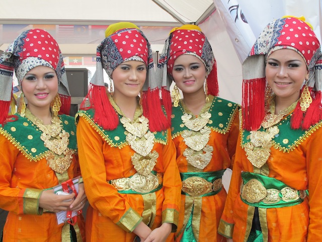 Wanita-wanita Palembang dengan baju daerah khas Sumatera Selatan yang kami temui saat hendak keluar dari area atlet.
