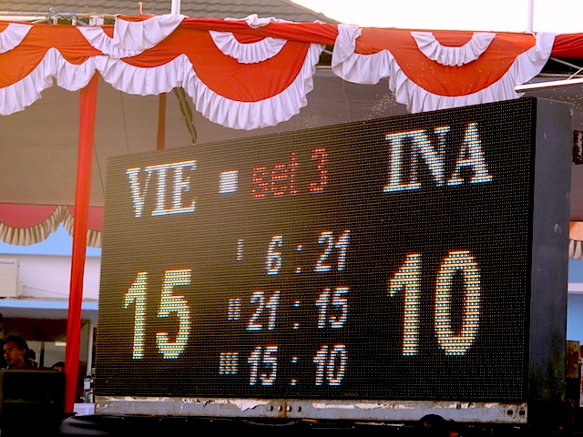 Di awal pertandingan saya sempat mengira kalau tim Indonesia adalah yang berbaju merah, eh di set ke-2 baru nyadar kalau itu justru tim Vietnam! :p