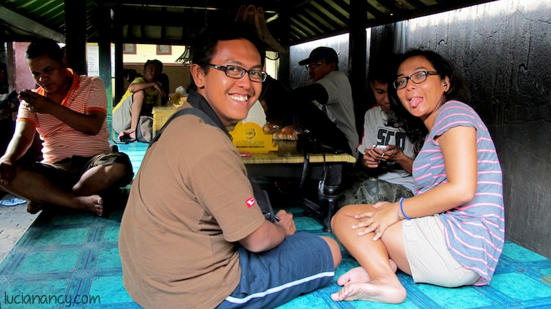 Muka-muka sebelum kepedesan makan ayam Taliwang.