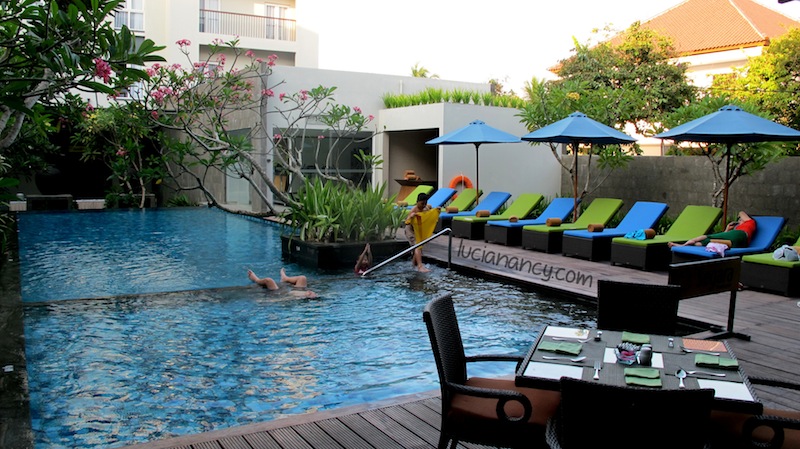 Akhirnya ketemu hotel yang ada kolam renangnya setelah delapan hari badan kaku nggak olahraga. :')